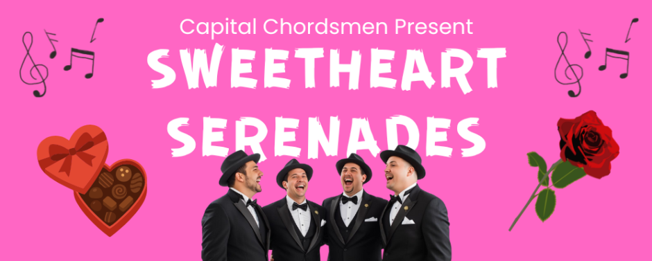 This Valentine’s season, the Capital Chordsmen will once again offer Sweetheart Serenades — a joyful, old-fashioned gift delivered in person by one of our barbershop quartets.